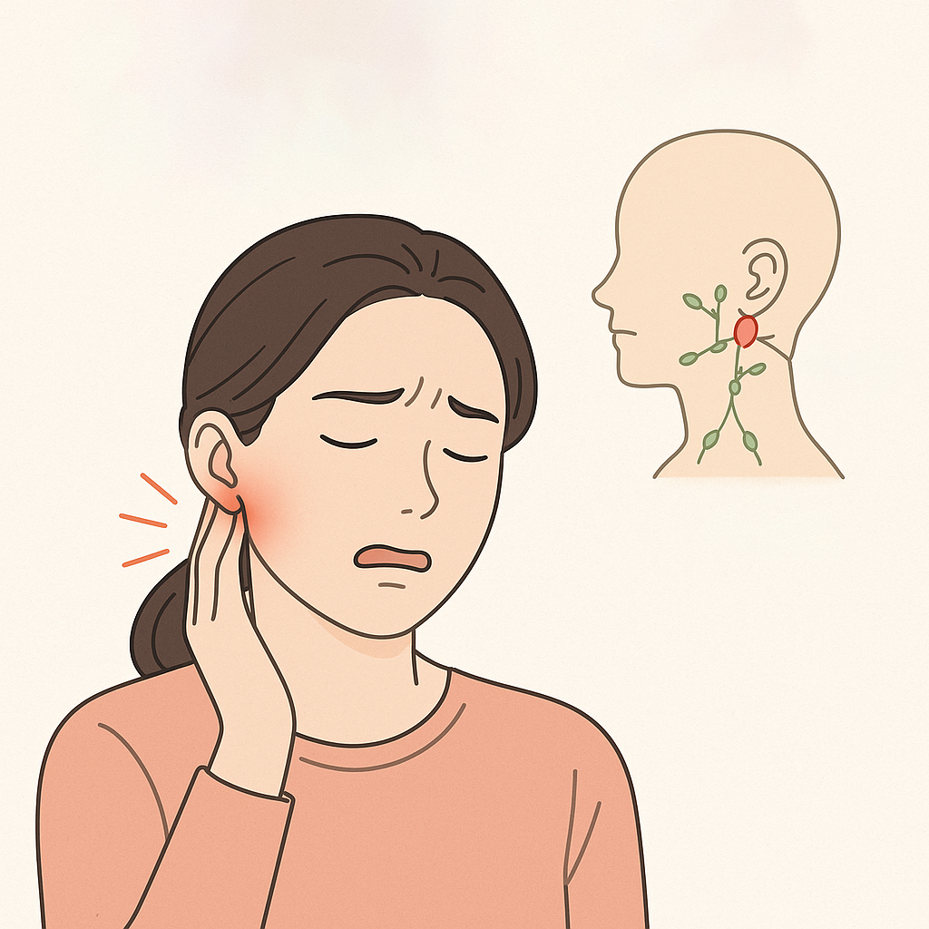 귀 뒤쪽이나 목이 부어오르거나 멍울이 느껴진다면,
