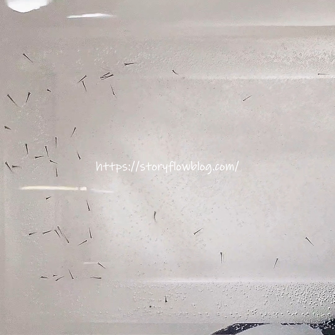 부화가 된 치어는, 구피의 새끼보다도 더 작고 가냘파 보였습니다.